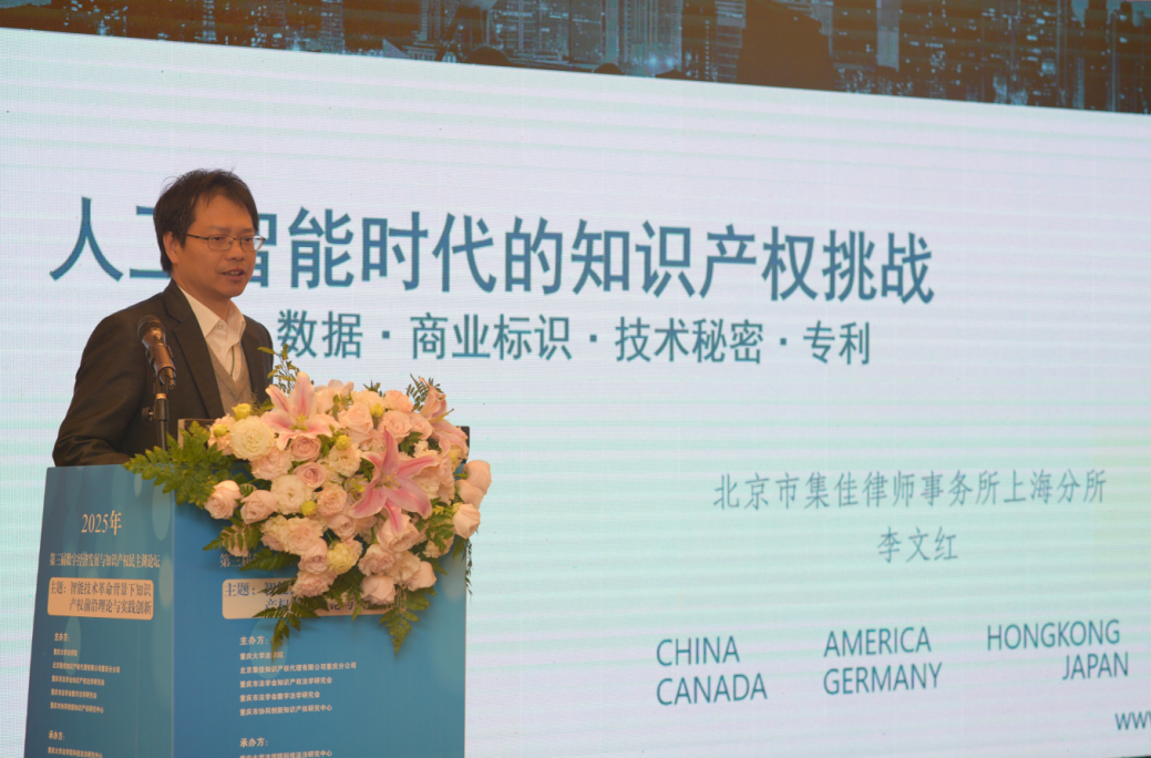 集佳上海分所主任李文红博士则以“人工智能时代的知识产权挑战”为题,结合多个典型案例,系统剖析了版权、数据、商业标识、专利四大领域面临的全新课题。他指出,AI训练数据的合法使用边界、生成内容的著作权归属、数据权益的司法保护等问题已成为行业焦点,其分享的高德诉万得不正当竞争案、抖音诉亿睿科模型参数侵权案等实务案例,为现场嘉宾提供了极具价值的实践参考,引发广泛共鸣。