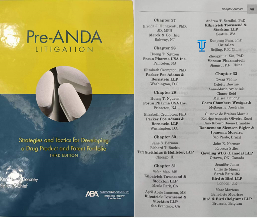 ![]() | 集佳合伙人彭鲲鹏博士参与撰写美国律师协会组织编写的仿制药诉讼工具书近日,美国律师协会(ABA)组织编写的《Pre-ANDA Litigation: Strategies and Tactics for Developing a Drug Product and Patent Portfolio》(Third Edition)正式出版... |