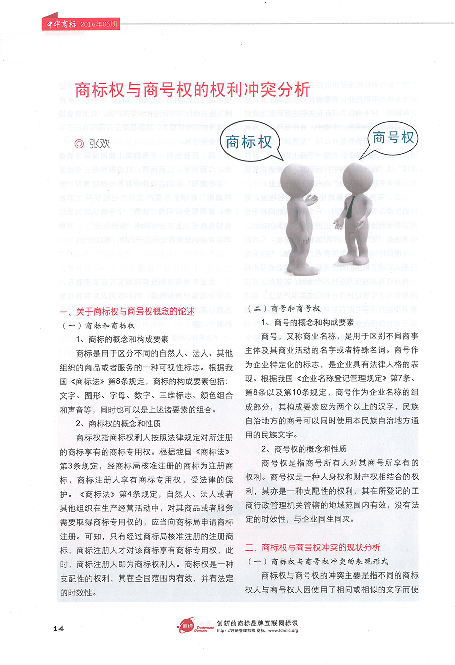 集佳文章《商标权与商号权的权利冲突分析》在《中华商标》发表
