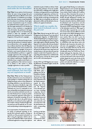 首页 > 集佳知识产权代理有限公司 > 理论研究 > 媒体报道 > 集佳合伙人陈丹律师文章在 INTA 会刊 Trademark Times 发表