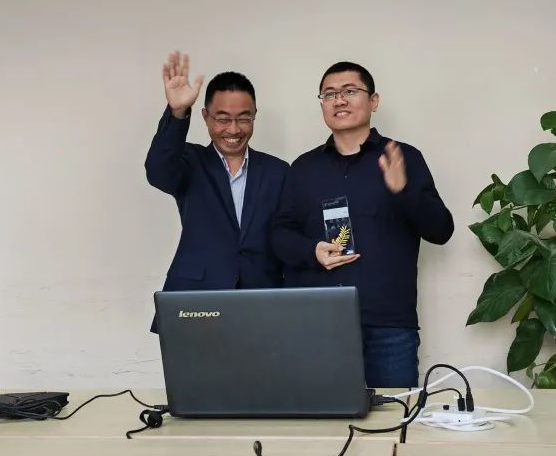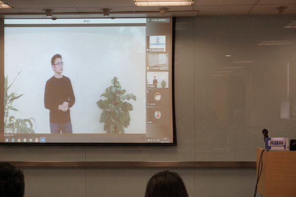 ▲ 杨林森老师为姚文杰颁奖(远程会议连线) ▲丁永凡老师为蒋静静颁奖