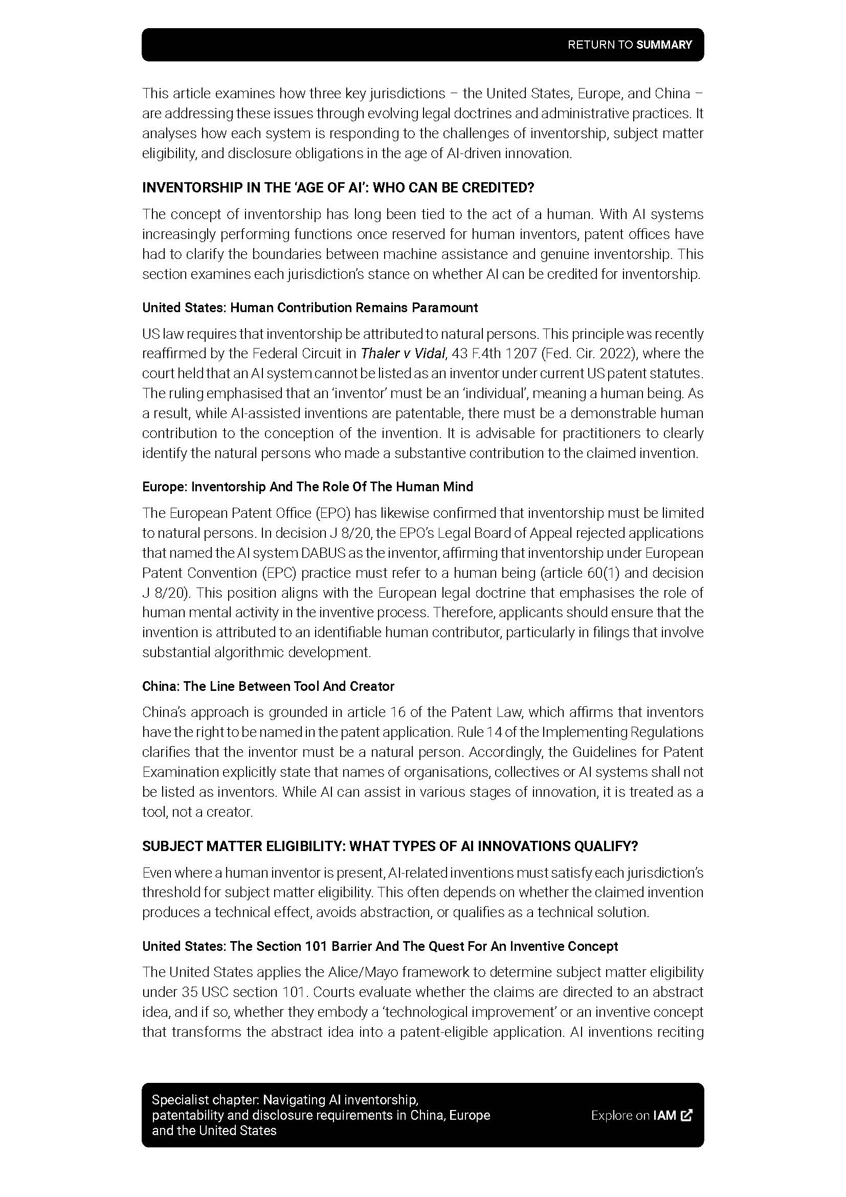 集佳文章《Specialist chapter:Navigating AI inventorship, patentability and disclosure requirements in China, Europe and the United States》在《IAM》发表