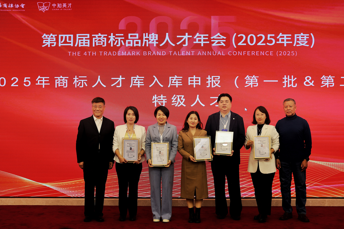 2025年11月28日,由中华商标协会主办的第四届商标品牌人才年会在北京成功举办。年会以“新质生产力下商标品牌人才的进阶之道”为主题,国家知识产权局、国家人力资源和社会保障部、北京市知识产权局相关领导、行业专家、企业知识产权负责人及法律工作者齐聚一堂,共同探讨商标人才培养与品牌发展新路径。集佳合伙人赵雷律师(2023年首批特级人才)应邀出席年会并主持会议。合伙人黄莺、合伙人李春亚、合伙人梁瑛、田达良、黄波作为2025年商标人才库入库(第一批)的特级人才代表,受邀出席年会并获颁证书。