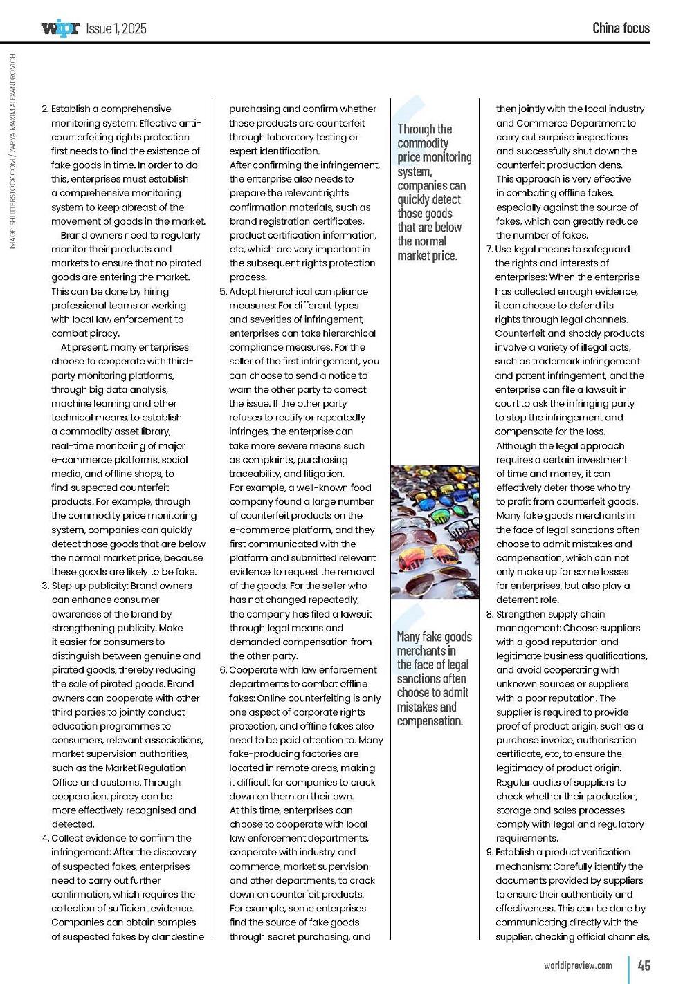 首页 > 集佳知识产权代理有限公司 > 理论研究 > 媒体报道 > 集佳文章《FAKES AND HOW TO FIGHT THEM》在《WIPR》发表