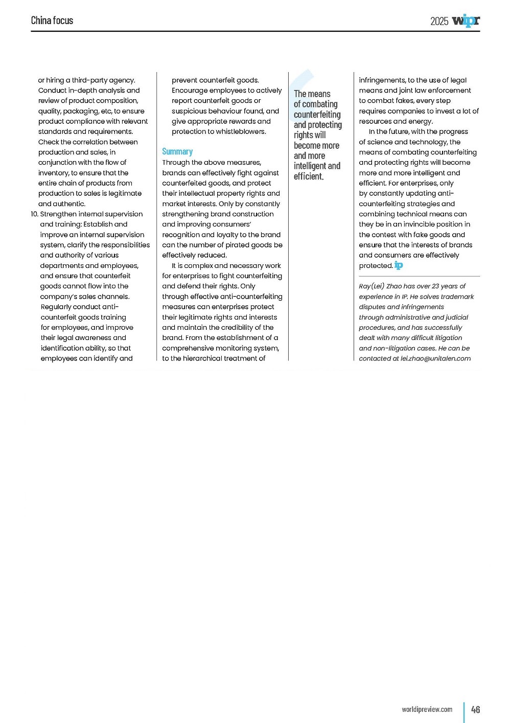 集佳文章《FAKES AND HOW TO FIGHT THEM》在《WIPR》发表