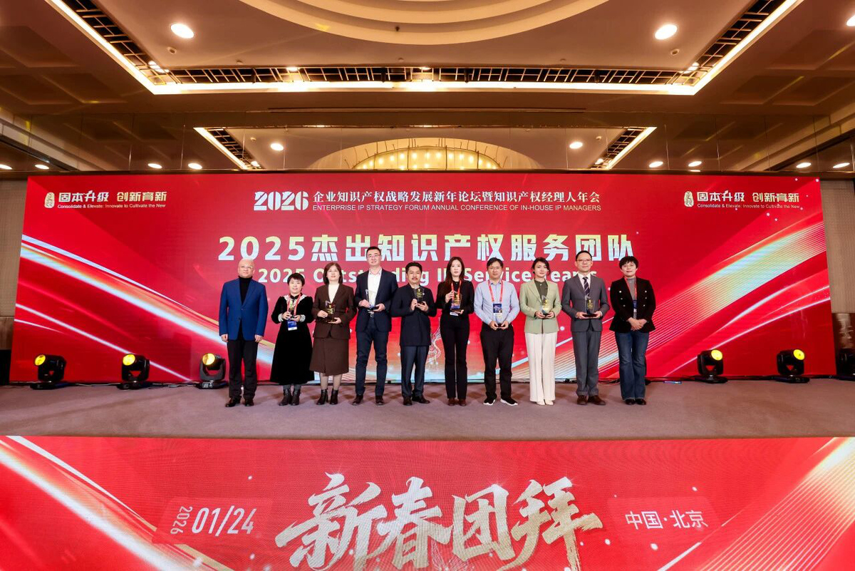 2026年1月24日-25日,“2026企业知识产权战略发展新年论坛暨知识产权经理人年会”在北京盛大举行。集佳知识产权再次荣膺“2025杰出知识产权服务团队”称号,这充分展示了集佳在知识产权保护领域的专业实力与卓越表现,也是对集佳优质服务与创新能力的高度认可。同时,集佳合伙人周丹丹律师应邀出席论坛并发表主题演讲。