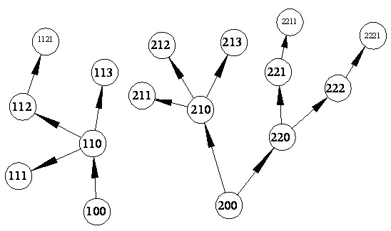 第一组100、110、112、113;第二组200、210、211、213。